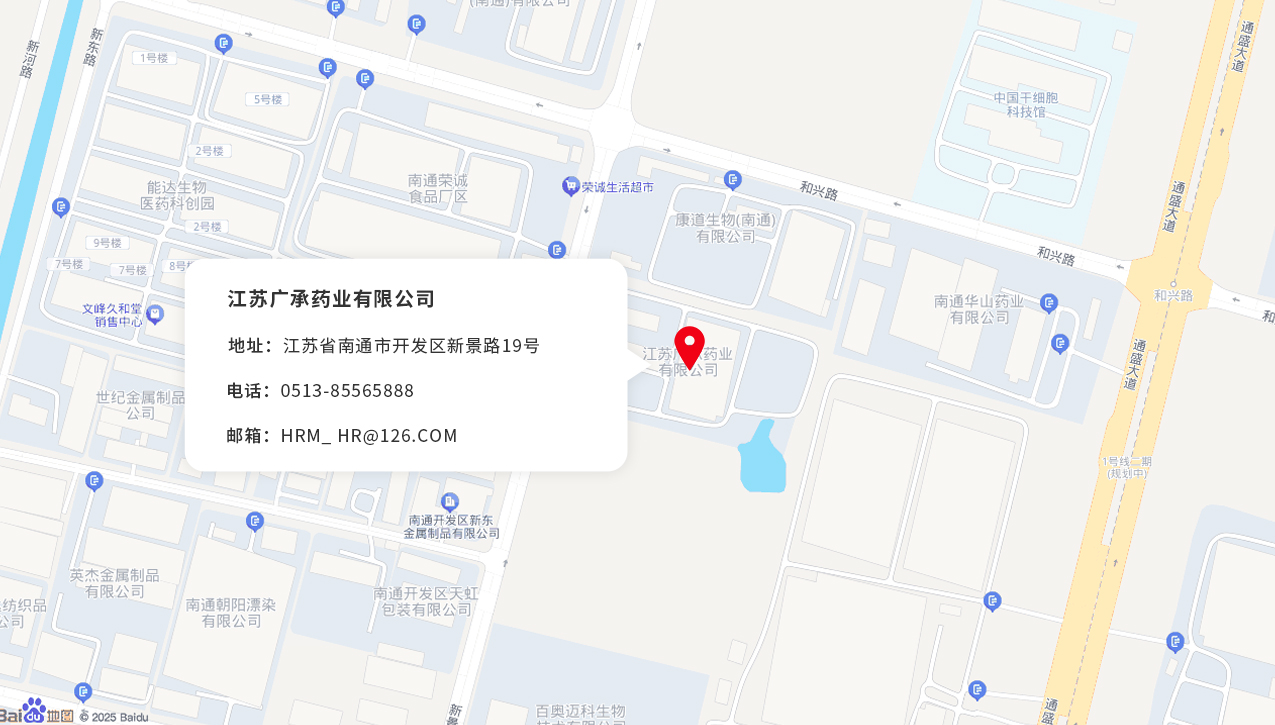 江苏广承药业有限公司坐落于中国长三角创新与工业重镇、“据江海之会、扼南北之喉”的南通市,与上海仅一江之隔。公司是一家集研发、生产与销售于一体的现代化制药企业,主要剂型包括口服溶液剂、口服混悬剂、糖浆剂、滴眼剂、口服乳剂、片剂和胶囊剂等。
